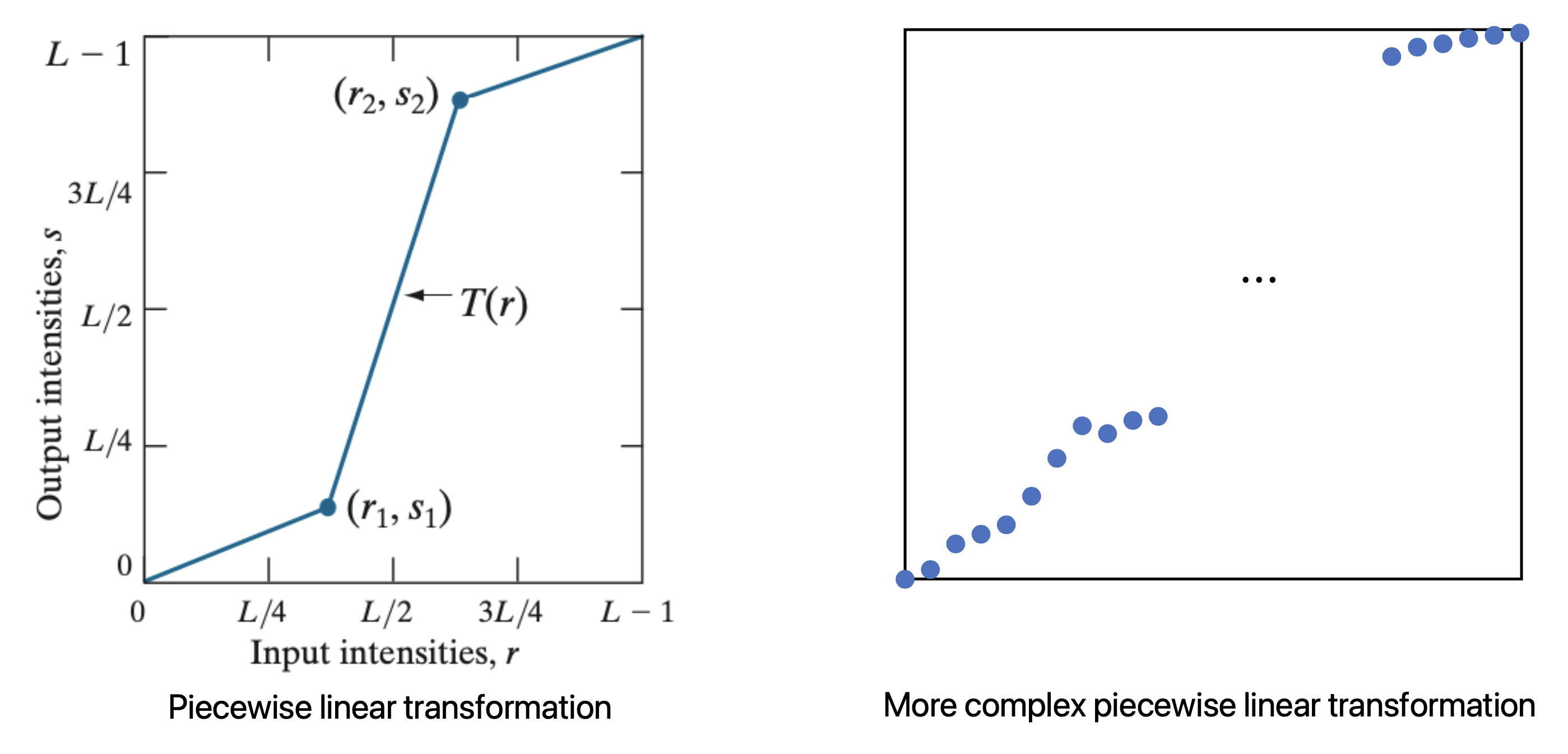 또 다른 complex 한 transformation 으로, "Piecewise Linear transformation" 도 있다.