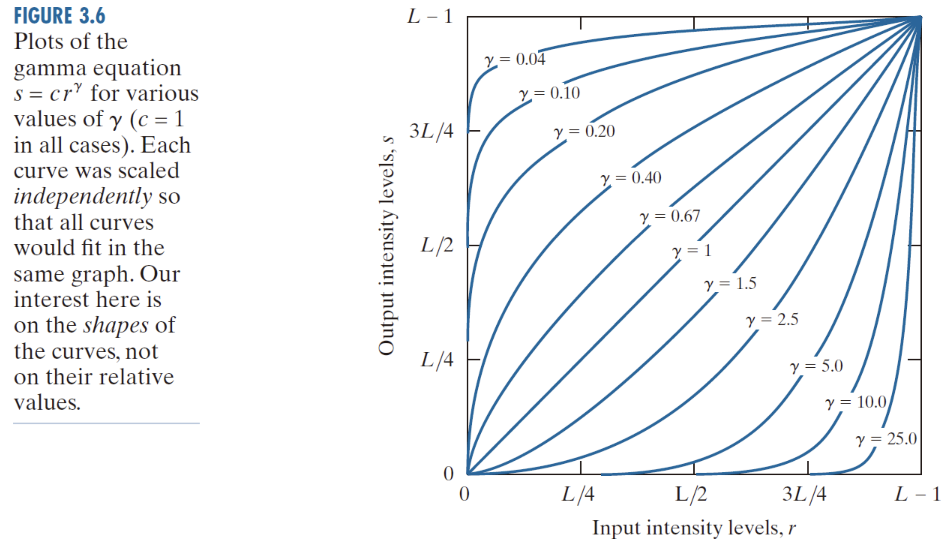 하나의 예시로, power -law (gamma) transformation 도 있다.