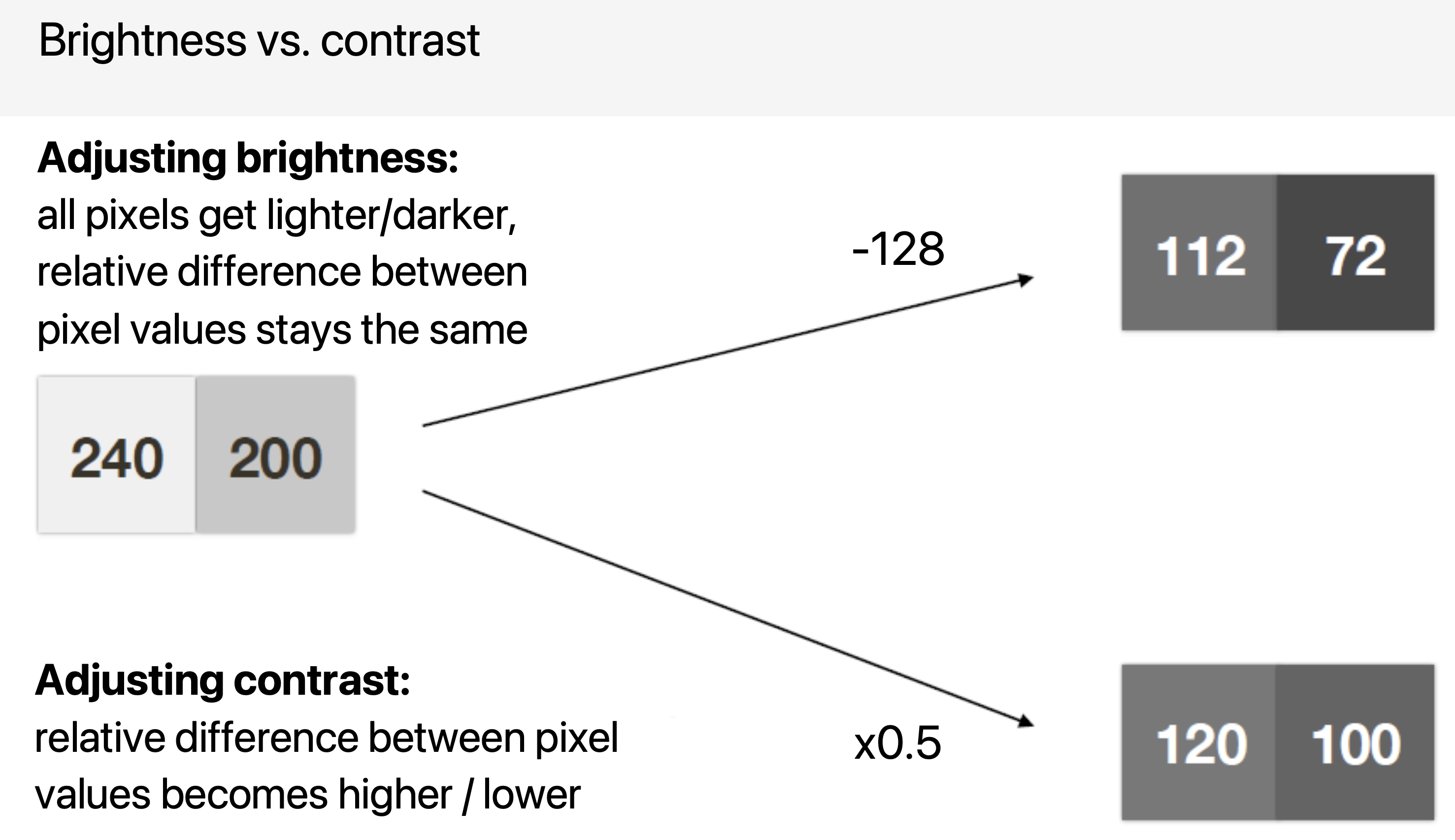 Contrast는 차이를 더욱 크게 혹은 작게 함으로써 경계를 강화한다.