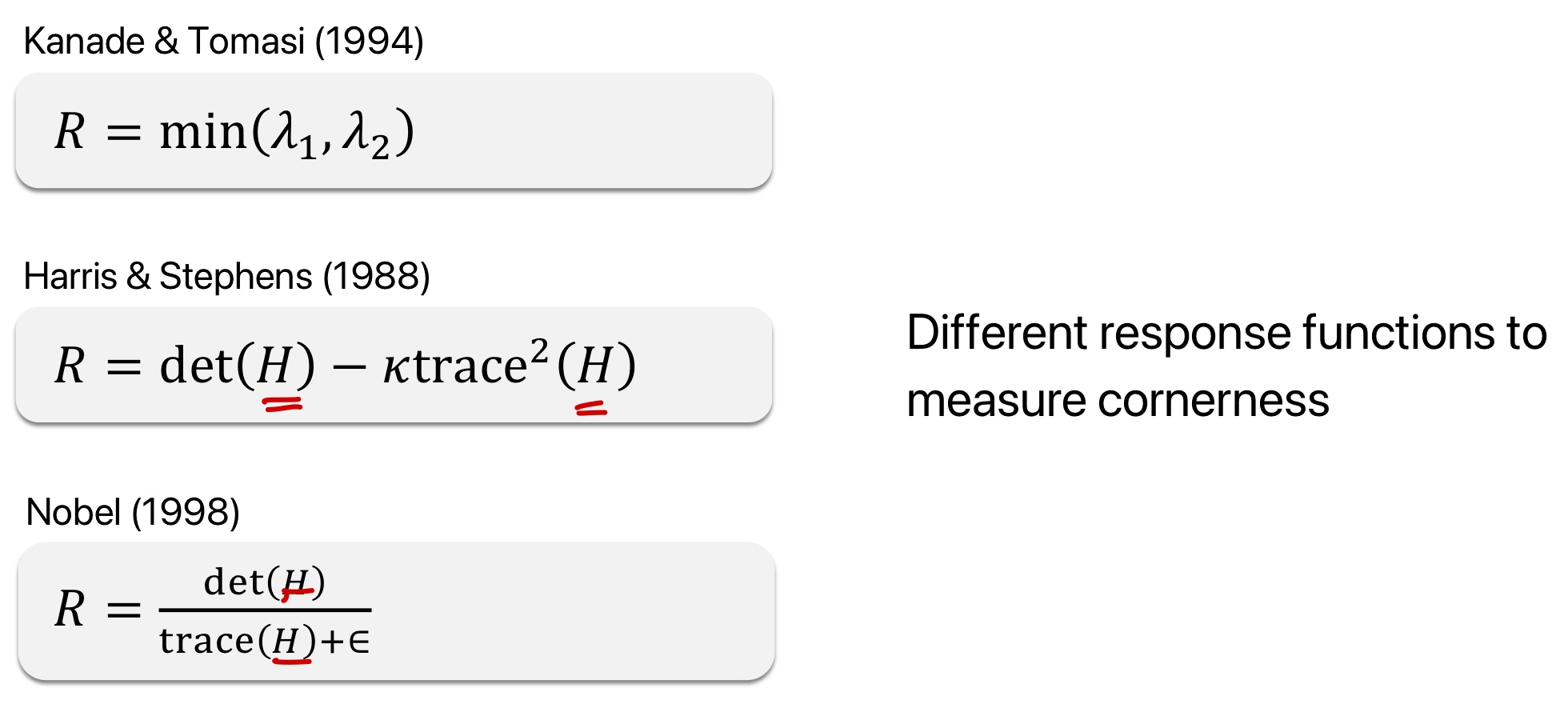 eigenvector 계산량 문제를 해결하고, 코너를 찾기 위한 대표적인 detector로 다음과 같이 구한다.